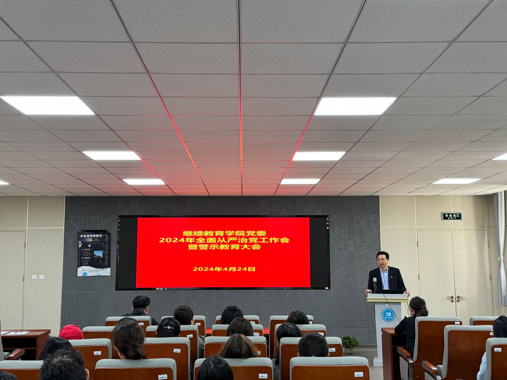 与会人员观看了北京高校和公司的警示教育片,通过2023年教育系统发生的违纪违法案例,深刻认识到违反党纪国法的严重性和危害性。